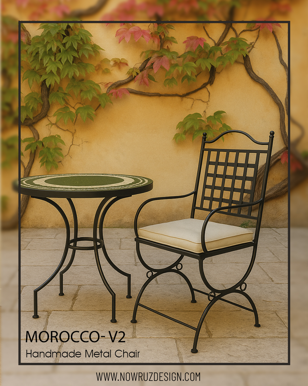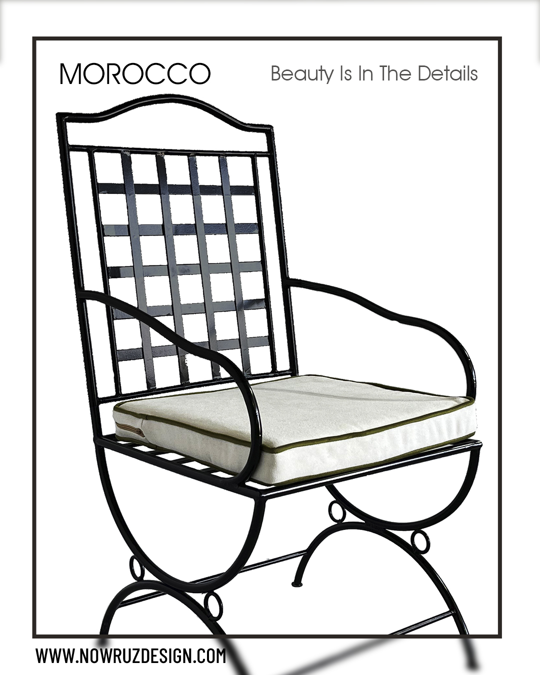 صندلی مراکشی مدل دستهدارترکیبی از ظرافت و استحکام. ساختهشده از آهن مقاوم و پوشش دادهشده با رنگ پودری الکترواستاتیک تا سالها زیبایی و دوام خودش رو حفظ کنه.طراحی الهامگرفته از سبک مراکشی، فضایی میسازه که هم حالوهوای مدرن داره و هم روح شرقی و اصیل. ایدهآل برای کسانی که دنبال یک انتخاب خاص و متفاوت هستن.این مجموعه در مدل بدون دسته هم ارائه شده که میتونید در محصولات ببینید.