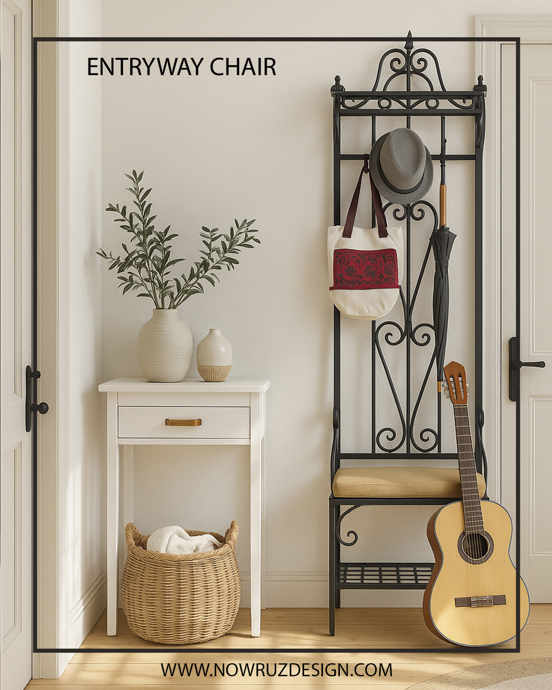 صندلی مناسب فضای ورودی دارای قابلیت آویزان کردن لباس و محل تعبیه کفش